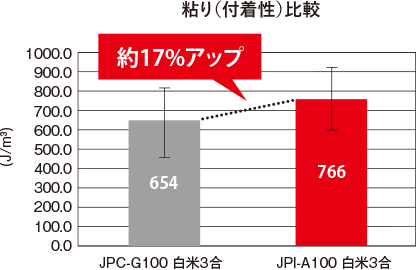 内釡の改良により、従来品と比較して粘りが約17%上昇しました。