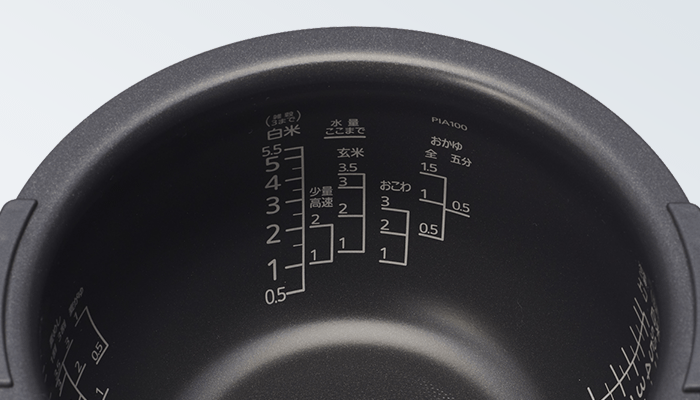 内なべの3カ所にそれぞれのメニューに適した水量目盛をつけています。