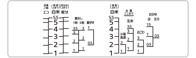 | 白米の炊飯及び保温米飯容量 |