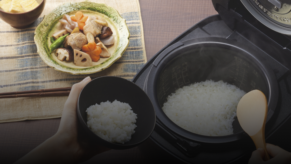 お茶碗1杯(0.5合)が最短約15分、1合が約17分※で炊飯できるメニューの搭載により、忙しい毎日でも炊きたてのごはんが食べられます。
