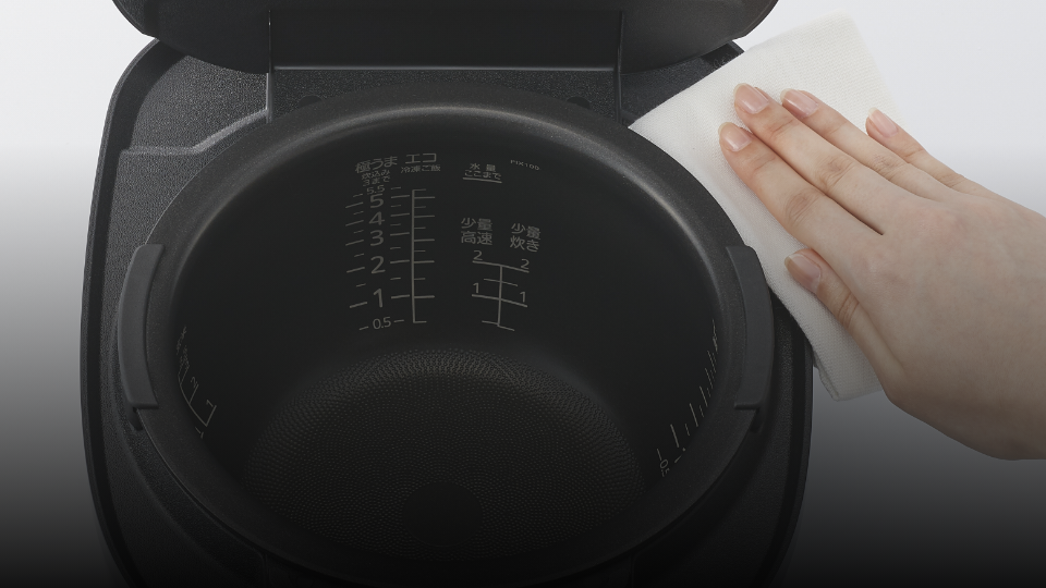 高温の水蒸気で内なべを洗浄する機能を搭載。炊飯や調理の後に内なべに水を入れてキーで洗浄メニューを選択します。手洗いが難しい気になる蒸気の通る部分のにおいを除去します。