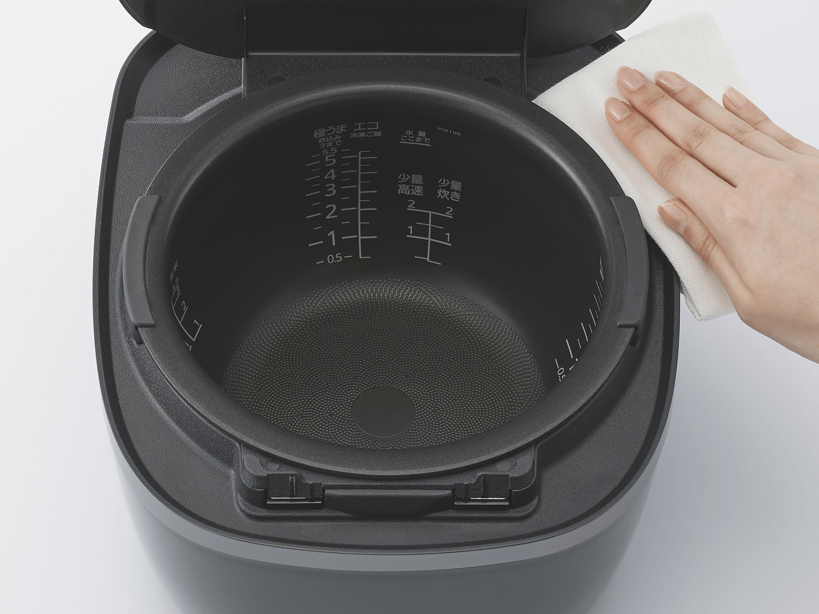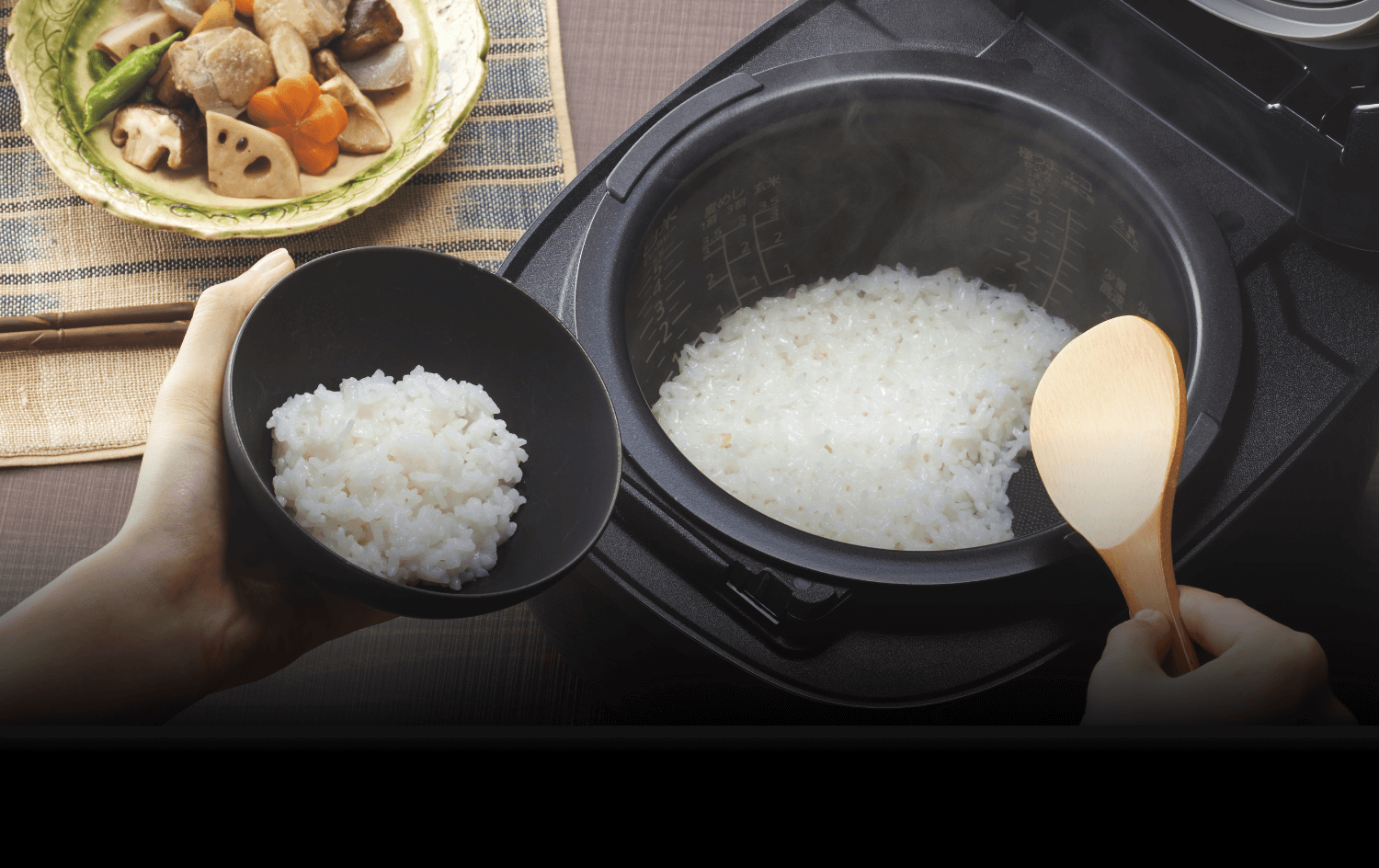 おいしく食べたい」という声にお応え。0.5合から2合までの少量をおいしく炊きあげます。