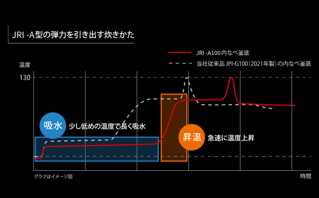お米一粒ひと粒を芯までじっくりと加熱することができ、ふっくらと粒のそろった旨みのあるごはんに炊きあげます。