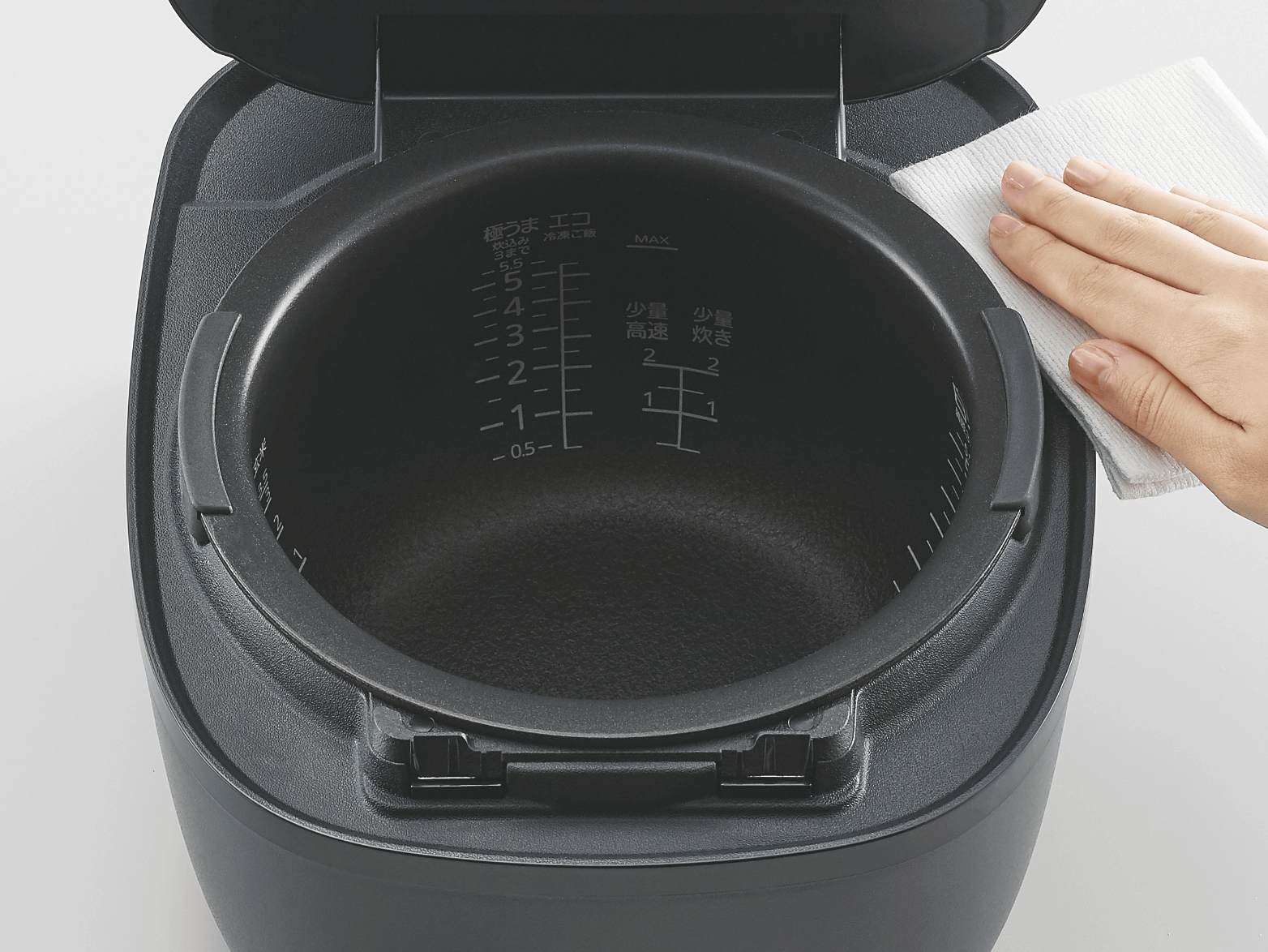 おいしく食べたい」という声にお応え。0.5合から2合までの少量をおいしく炊きあげます。