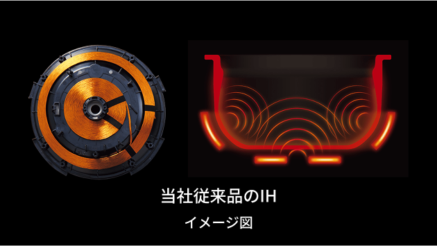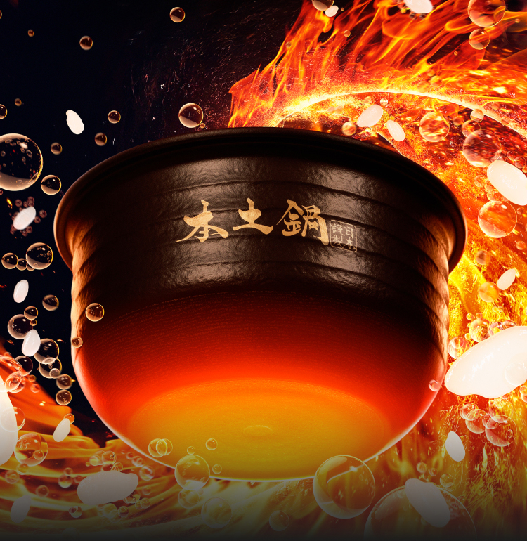 土鍋性能をアップする「300℃ WレイヤーIH※3」を採用。(JRX-S060は250℃ WレイヤーIH※3)2層のIHとシームレス構造で発熱パワーを最大化。土鍋に熱をまんべんなく伝え、激しくもやさしい熱対流を生み出し、お米一粒ひと粒に効率よく丁寧に熱を伝えます。