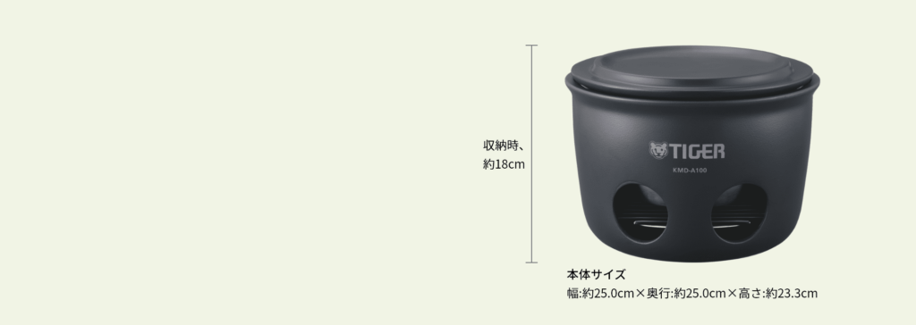 収納時は高さ約18cmに収まり、コンパクトに収納することができます。