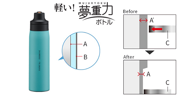 ボトルの内面には、なめらかで光沢のあるスーパークリーンPlusを施しました。汚れ・においがつきにくく、サビにも強いので塩分が含まれているスポーツドリンクを入れてもOK。