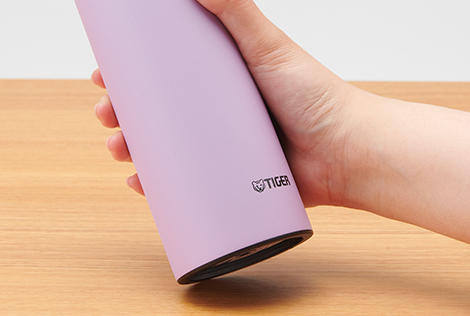 テーブルやデスクに傷をつけにくく、すべりにくいよう底を樹脂製にしてい ます。ボトルを置く時の音も軽減され、静かな場所での使用にもおすすめです。