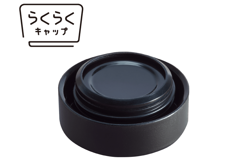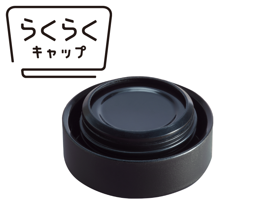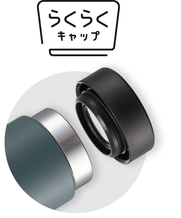 キャップはパッキンとせんが一体化した「らくらくキャップ」で手間なく洗えます。パッキン部分は露出していてスポンジが当たりやすくお手入れしやすい構造です。