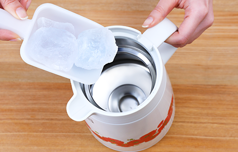 ステンレス製の真空二重構造だから、ガラス製まほうびんに比べてコンパクト、氷を直接入れても内びんの破損の心配がありません。