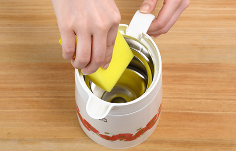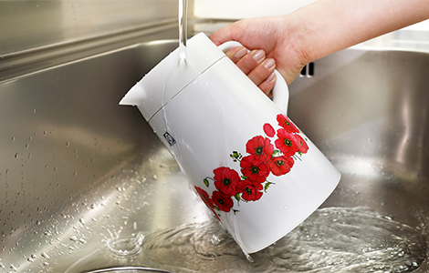 本体は丸洗いでき、口径は約7.5cmと広口なので手を奥の方まで入れて本体の内側をしっかり洗っていただけます。