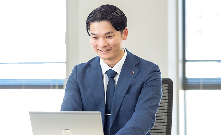 現在は、本部担当の先輩に随行して商談のサポートをする立場です。どのように商談を進めるのか、先方の質問に対してどのように回答するのか、どのようなストーリーで販売施策を提案するのかなど、一番近い距離で学ばせていただいています。自分一人ではまだまだ経験が浅くサポートに徹していますが、貴重な学びの機会を得ているからこそ、自分の成長につながっていると思います。
