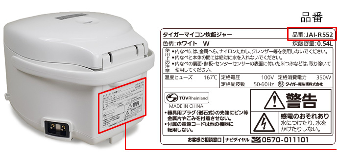 ロット番号は製品底面の年式シール、もしくは品番が記載されているシール内に印字されています。 ※必ず内なべを外した状態、もしくは内なべが空の状態でご確認ください。内なべに内容物が入っている状態で、逆さまにすると内容物がこぼれてやけどのおそれがありますので、ご注意ください。