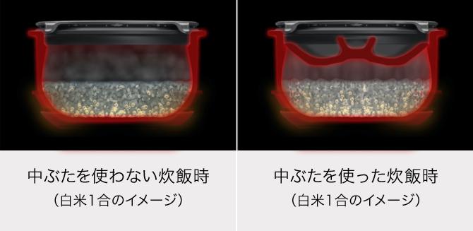 お米の種類、水加減等により、おこげのつき方が変わることがあります。
