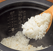もち麦にあわせてしっかり吸水、高温で炊きあげてニオイを抑制します。