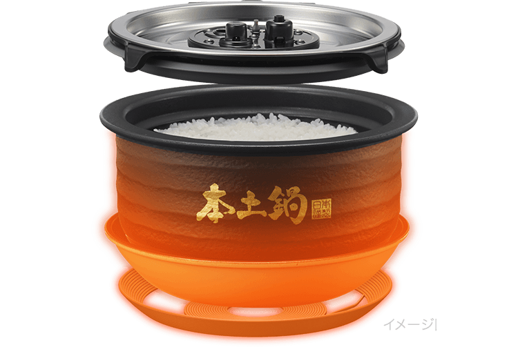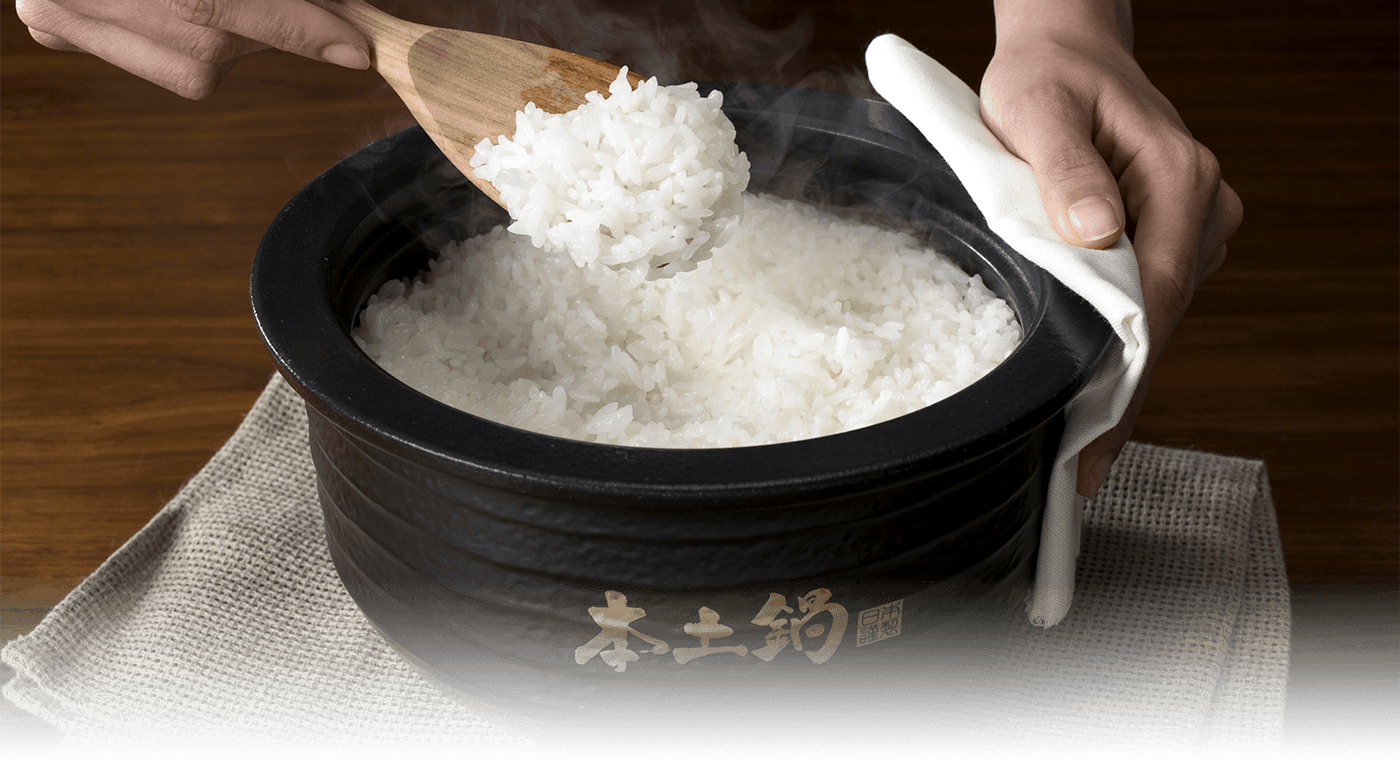 蓄熱性の高い「遠赤土かまど」が本土鍋にしっかり熱を伝え、土鍋の遠赤効果による輻射熱で、お米一粒ひと粒を芯からじっくり加熱します。