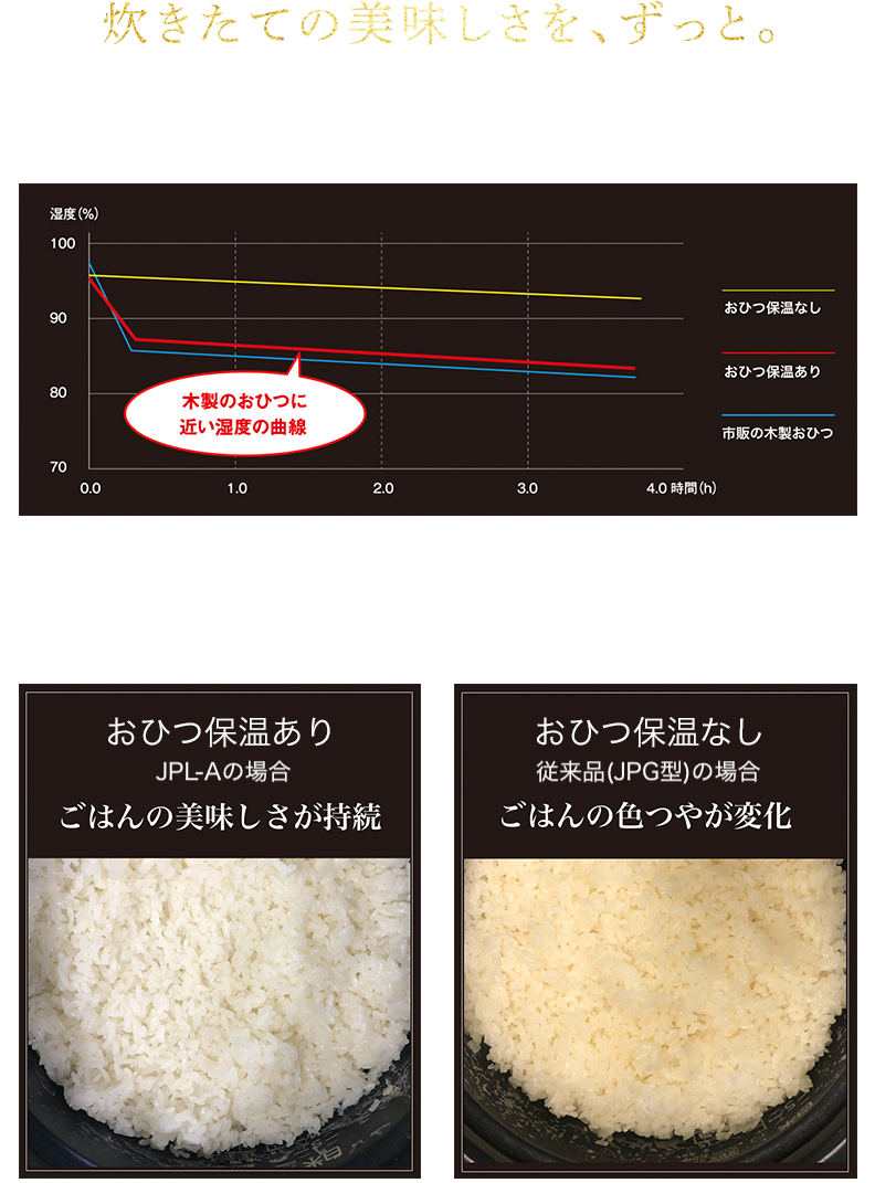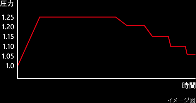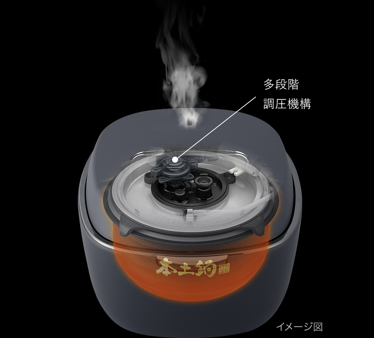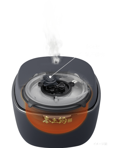 蒸らし時の釡内温度を高く維持させつつ、段階的に優しく温度(圧力)変化させて甘みをぐっと引き出します。