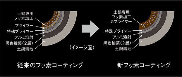本土鍋の圧倒的な高火力を受け止める。 「内なべ新フッ素コーティング」