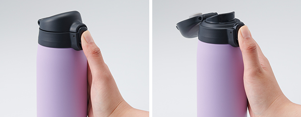 ท่านสามารถกดเปิดฝานี้ได้อย่างง่ายดายโดยใช้มือเพียงข้างเดียว ฝาจะล็อกเองอัตโนมัติเมื่อปิดลง ช่วยให้ผู้ที่ใช้งานฝาชนิดนี้เป็นครั้งแรกที่อาจจะลืมล็อกฝาได้รับความสบายใจและมั่นใจได้ว่า เพียงปิด ฝาจะล็อกเองอัตโนมัติอย่างแน่นอน ระบบการล็อกอัตโนมัตินี้ยังช่วยป้องกันมิให้เกิดกรณีที่ฝาจะเปิดออกเองระหว่างที่ใส่กระบอกน้ำไว้ในกระเป๋า ซึ่งจะเป็นสาเหตุให้น้ำไหลหกออกจากกระบอกน้ำได้