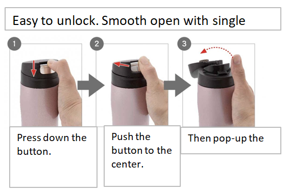 เมื่อปิดฝาแล้ว ฝาจะล็อคเองโดยอัตโนมัติ ไม่ต้องกังวลว่าน้ำจะหกใส่กระเป๋า