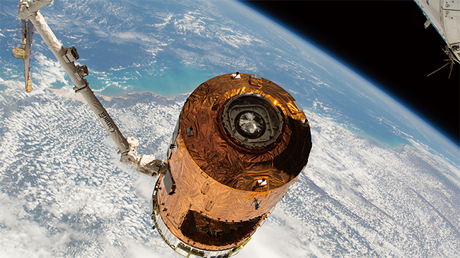 "Kounotori 7 (HTV7) với khoang tái nhập nhỏ của JAXA trên tàu" (Ảnh do JAXA / NASA cung cấp)