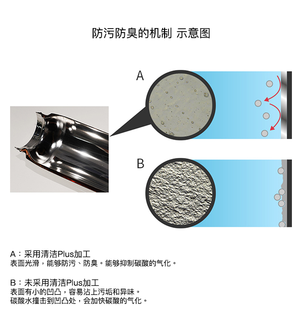 清洁Plus(+),具有防污、防臭和抑制碳酸气化的作用